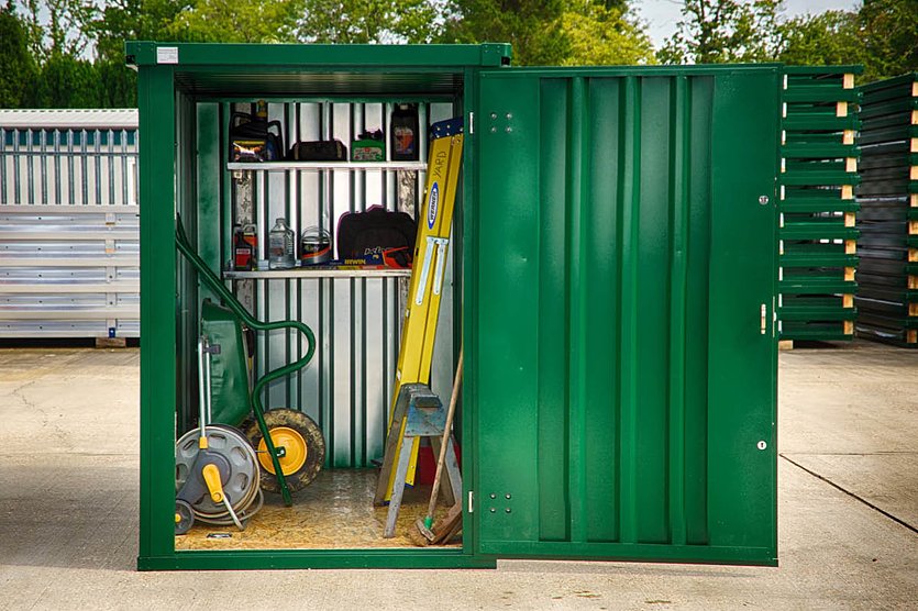 Flat Pack Metal Garden Store – Green (2.28m x 1.55m x 2.09m) is a fully galvanized steel store now available in a Moss Green (RAL6005) powder-coat finish. This secure, portable garden store is a stunning robust and durable alternative to the mundane wooden or plastic garden shed.