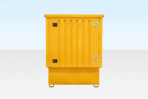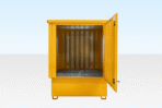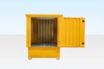 This Flat Pack Single IBC Store securely accommodates one IBC container while adhering to site chemical safety storage regulations. It is designed without an upstand lip and features a fully opening door for convenient forklifting of IBCs in and out, along with a sumped base to contain any spillage and a suspended grated floor.